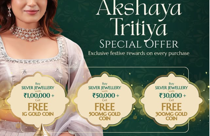 Shop your favourite silver jewellery this Akshaya Tritiya and receive gold coins on your purchase.