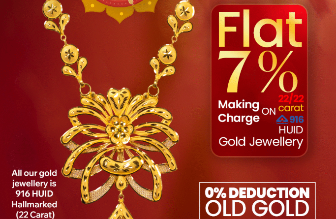 Celebrate this festive season of wealth and blessings with Flat 7% Making Charge on 916 HUID Hallmarked Gold Jewellery