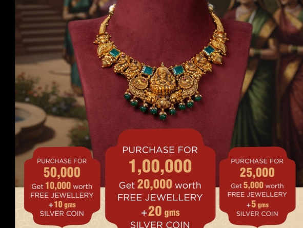 On ₹25,000 purchase 5,000 Silver Jewellery + 5gm Silver Coin Free