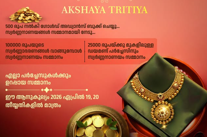 ഐശ്വര്യത്തിൻ്റെ പുതിയൊരു തുടക്കം! ഈ അക്ഷയ തൃതീയയ്ക്ക് TP Gold & Diamonds-ൽ നിന്ന് സ്വർണ്ണാഭരണങ്ങൾ സ്വന്തമാക്കൂ, ഒപ്പം ആകർഷകമായ സമ്മാനങ്ങളും നേടൂ!